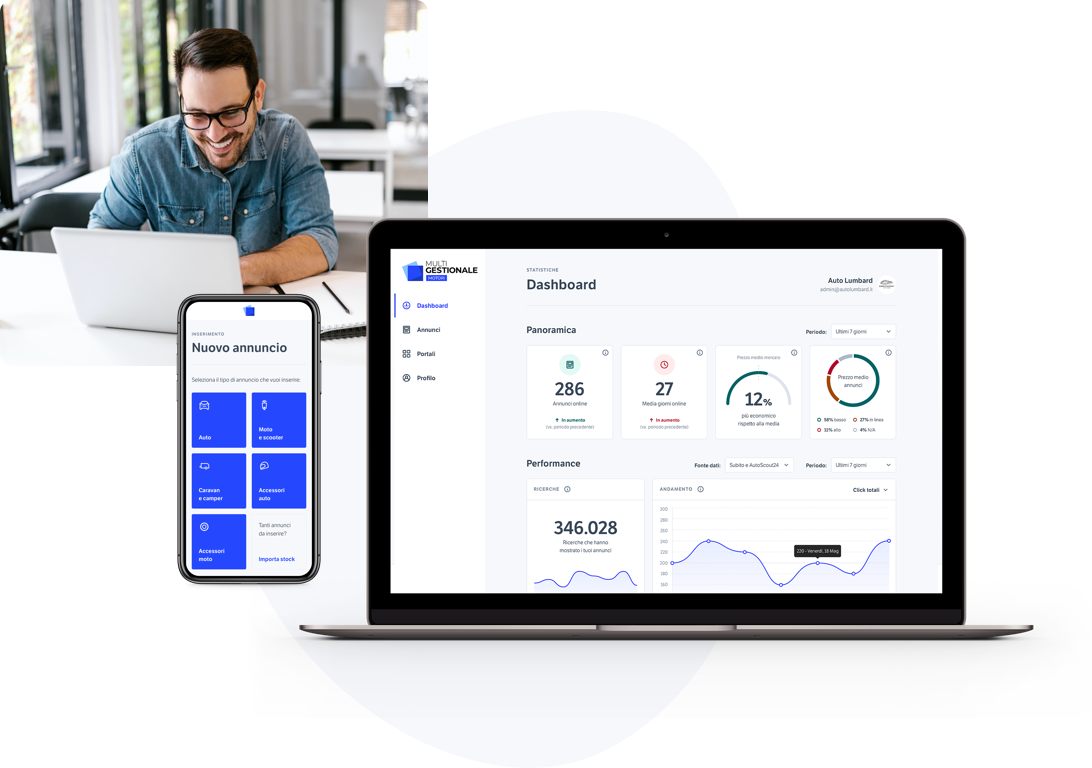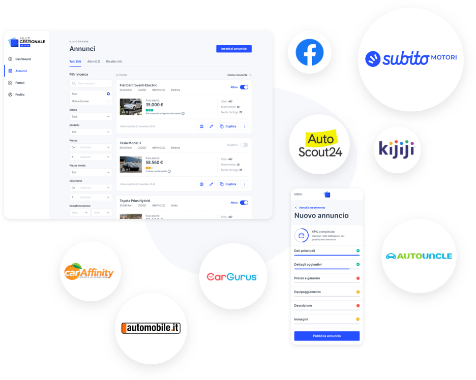 La soluzione più adatta ai professionisti del mondo automotive. Pubblica i tuoi annunci velocemente, risparmia tempo e aumenta la visiblità del tuo business